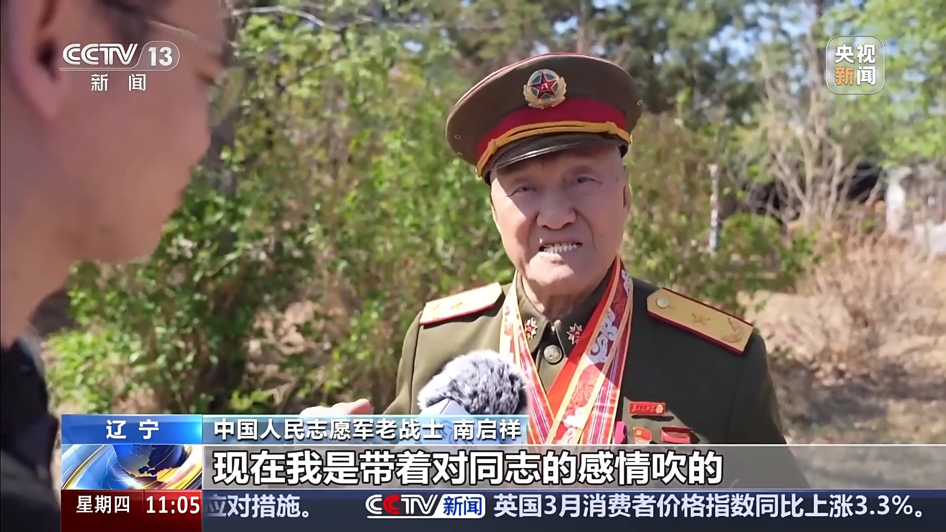 中国人民志愿军老战士 南启祥:过去是带着杀敌的情绪吹冲锋号,现在我是带着对同志的感情吹的,全是想念他们,他们回家了,看到我们国家强大、国防的强大、人民的幸福安康,咱们胜利了,咱们回家了。