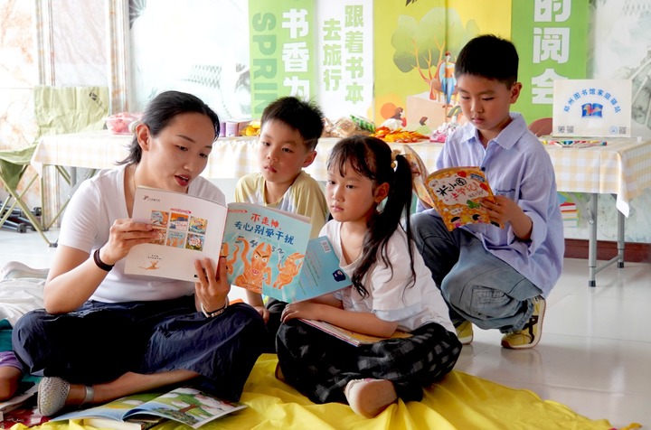 这是郑州图书馆祥祯苑小区家庭驿站举办的“亲子共读”活动现场。新华社记者 袁月明 摄