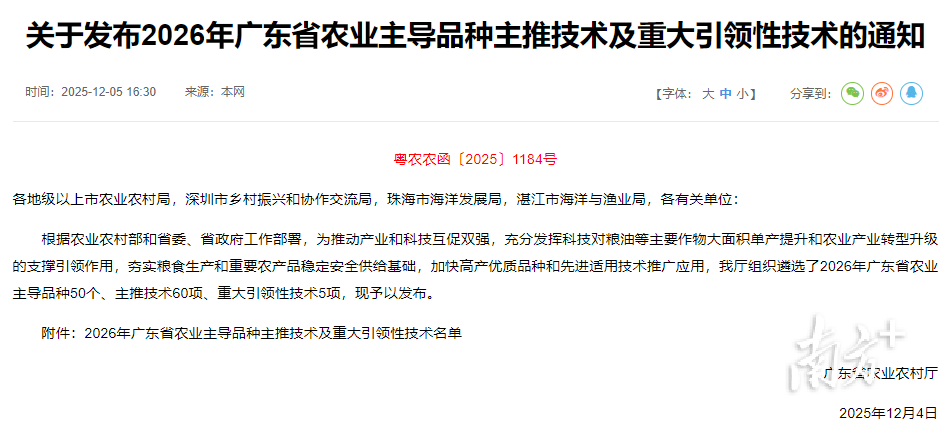 根据农业农村部和省委、省政府工作部署,为推动产业和科技互促双强,充分发挥科技对粮油等主要作物大面积单产提升和农业产业转型升级的支撑引领作用,夯实粮食生产和重要农产品稳定安全供给基础,加快高产优质品种和先进适用技术推广应用,本次名单涵盖主导品种50个、主推技术60项、重大引领性技术5项。